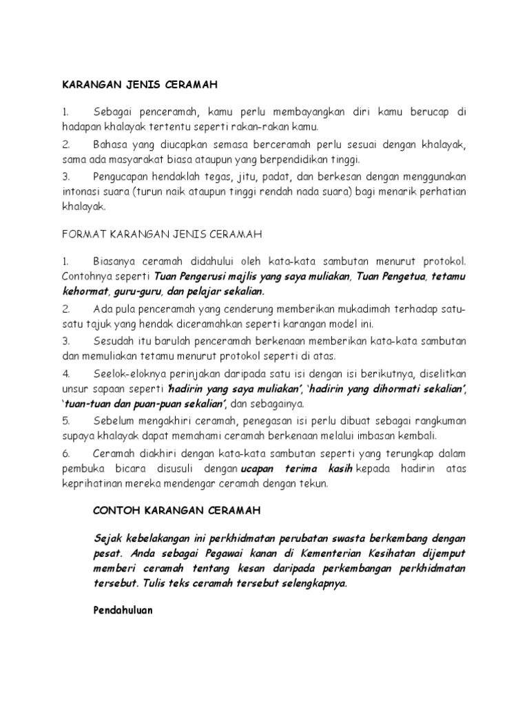 Contoh karangan ceramah yang dihormati tuan pengerusi majlis yang berusaha puan zaitun binti ibrahim pengetua smk jalan reko guru guru dan hadirin yang dihormati. Menggunakan kata teknis atau istilah. Karangan jenis surat kiriman rasmi soalan andaikan anda.