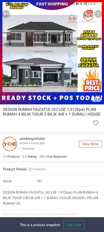 Design Rumah Faizatul 62 X38 1 912kps Plan Rumah 4 Bilik Tidur 3 Bilik Air 1 Surau House Design Pelan Rumah 3d Shopee Malaysia